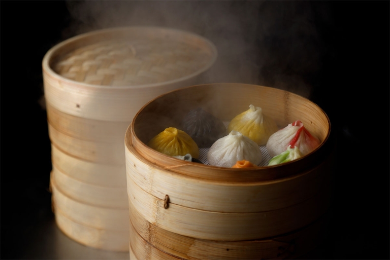 名物の小籠包は注文を受けてから熟練の点心師がひとつひとつ包み込み、蒸し立て熱々の状態で提供。