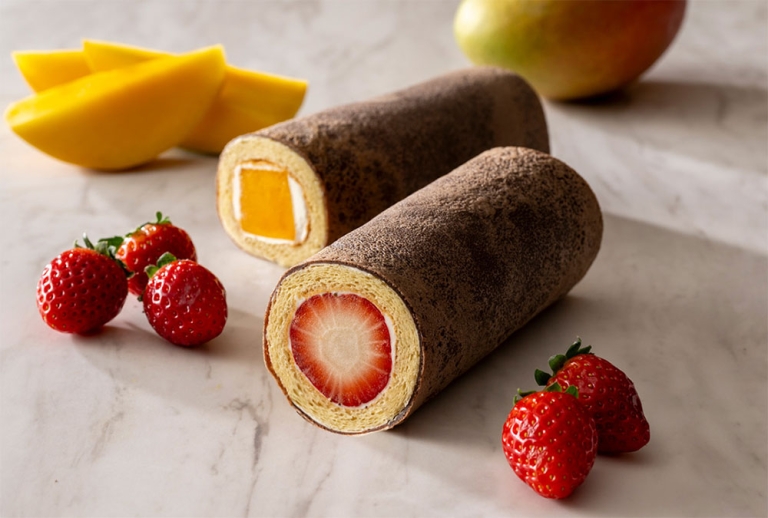 丸かぶりしやすいよう一般的なロールケーキよりも小ぶりサイズとなっている点が特徴で、今年は丸ごとぎっしりと並んだ大粒の国産いちごに加え、“マンゴー”を包んだ恵方ロールも楽しめます。