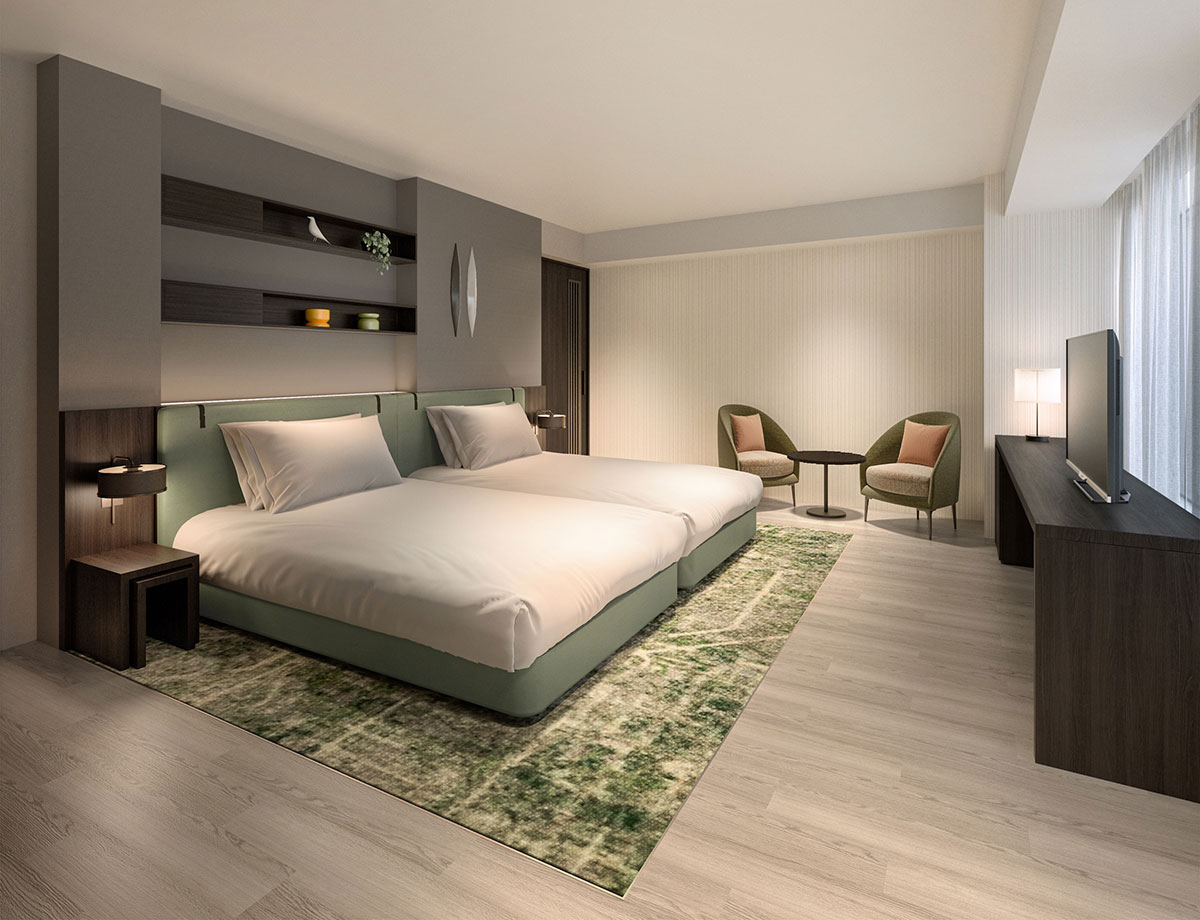ダブルベッドやクイーン・ツインベッドの構成に加え、バリアフリー対応の客室も完備し、モダンで機能的なインテリアと充実したアメニティにて誰もが快適かつ満足感の高いホテルステイ提供を目指します。