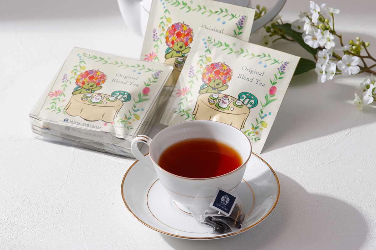 当初は開業90周年を記念してラウンジのメニューとしての提供のみでしたが、リピーターの方からの要望に応え、2021年に自宅でも楽しめるようオリジナルブレンドティーのティーバッグが商品化されました。
