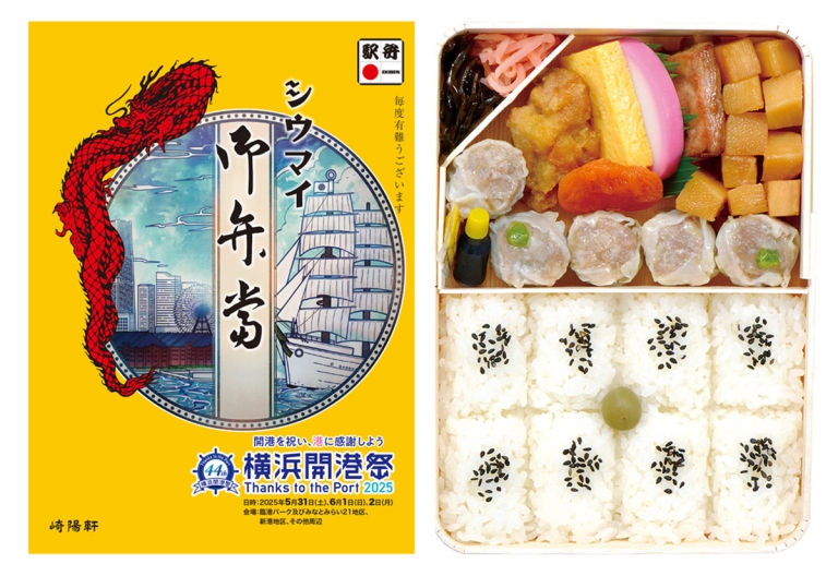 崎陽軒は第44回「横浜開港祭」の開催に合わせて、神奈川エリアを中心とした約100店舗にて特別デザインの掛け紙を纏った「シウマイ弁当」を2025年5月29日(木)より6月2日(月)まで展開します。