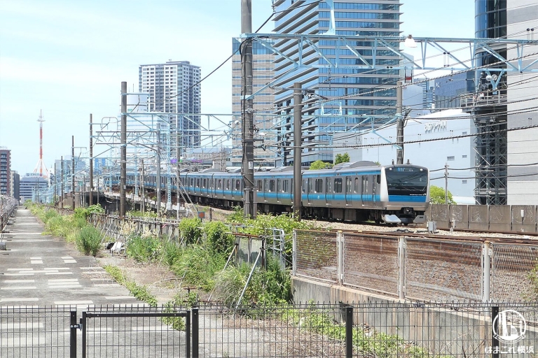 歩道の真横を列車(横浜線や根岸線など)が走行する姿は非常にダイナミックで遮るものなく列車を見られるのも魅力。電車好きならば一度は足を運んでおきたいトレインビュースポットです。
