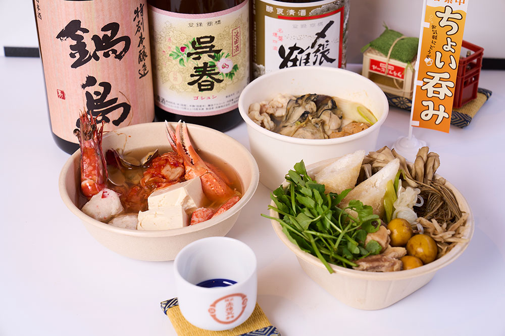 鍋小屋ではさまざまな鍋料理を食べ比べできるよう一杯サイズで提供が行われ、鍋によく合う選りすぐりの日本酒とともに寒い冬に温かな味覚を堪能できます。