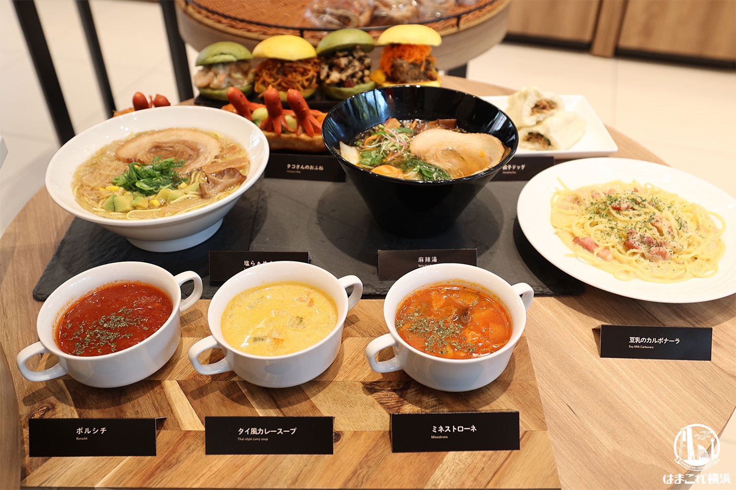 焼きたてのパンはもちろん、従来のベーカリーの枠を超え、元町本店2階のレストラン「M’s Table」のシェフが手がける麻辣湯や豆乳のカルボナーラなどのフードメニューも新たに楽しめます。