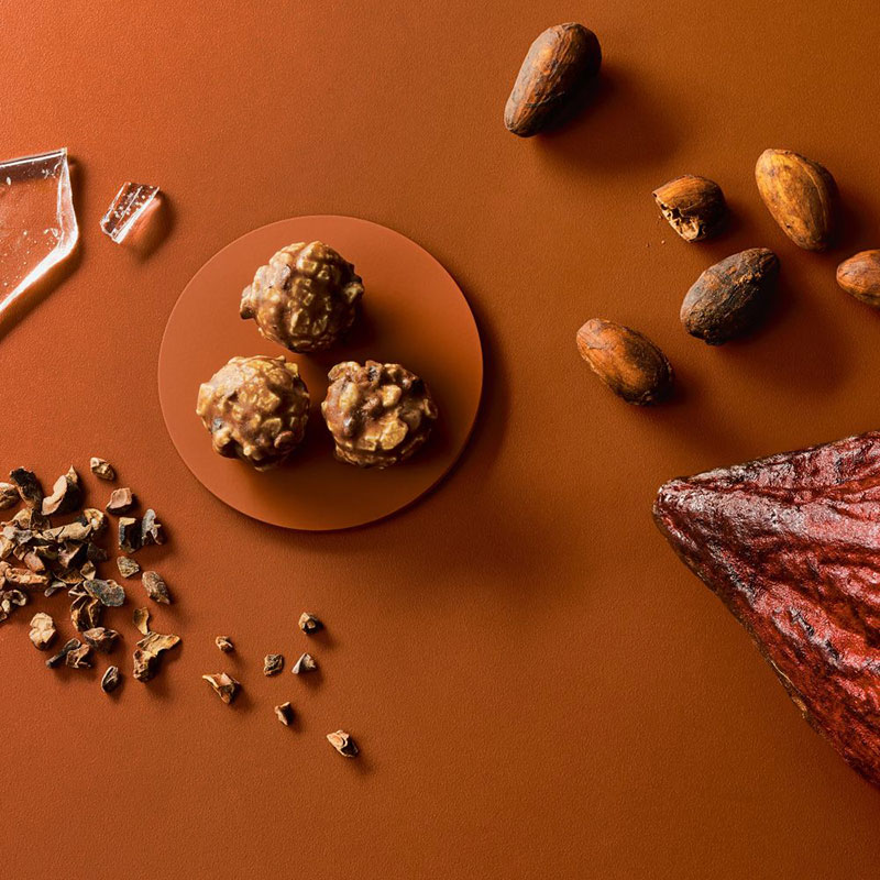 コラボ商品は一粒一粒こだわったポップコーンにじっくりと焙煎したカカオニブを、自家製ココアパウダーを練り込んだ特製ココアキャンディで包み込んだポップコーン。