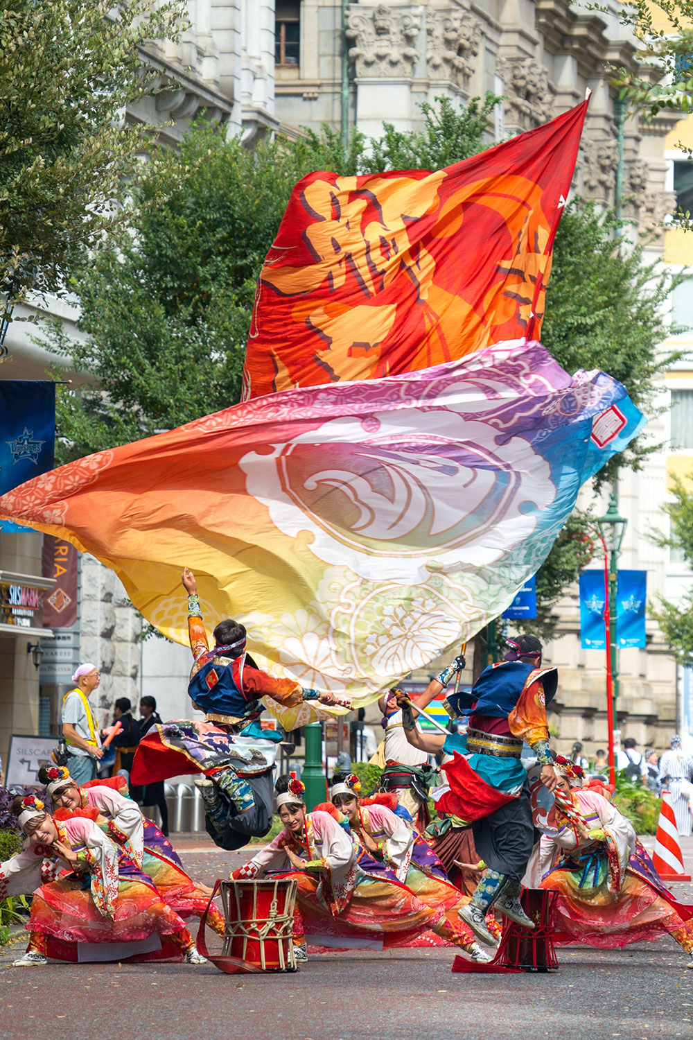 2日目には参加チームの旗が共演して魅せる圧巻のフラッグカーニバル、大トリを狙うチーム対抗の南中ソーラン合戦なども行われ、横浜を舞台に見応えのある演舞を間近で楽しめます。